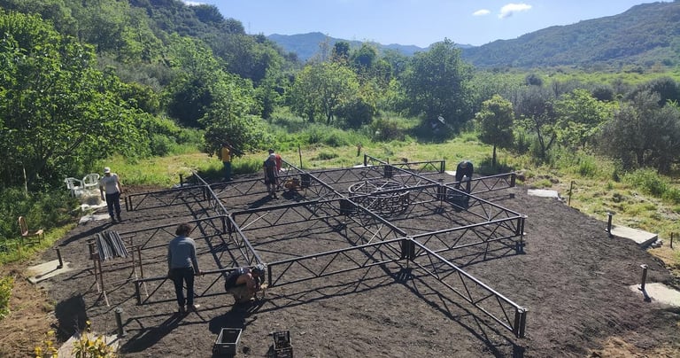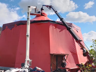 Aprile 2025, con l'arrivo della primavera inizia il grande montaggio del tendone a Settevoci in collaborazione con il team di Ponte di Archimede Produzioni