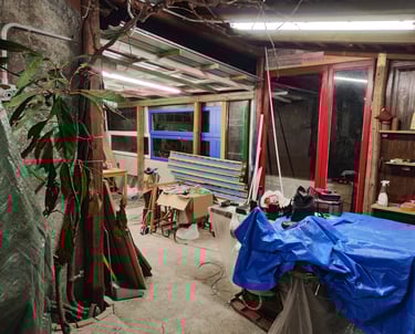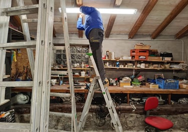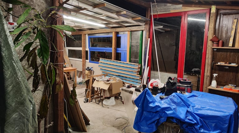 Marzo 2026 - Continua la ristrutturazione. La falegnameria è quasi pronta! In corso la creazione dell'impianto elettrico, l'allaccio delle macchine allo stesso, restaurazione di finestre per la chiusura del porticato.