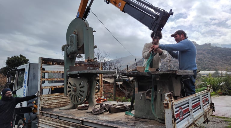 Gennaio 2026 - Dal fortunato incontro con Nino Romano, falegname storico Francavillota, avviene il grande trasporto dei macchinari e la promessa di un corso di formazione non appena lo spazio sarà ultimato.