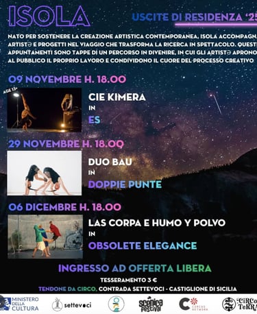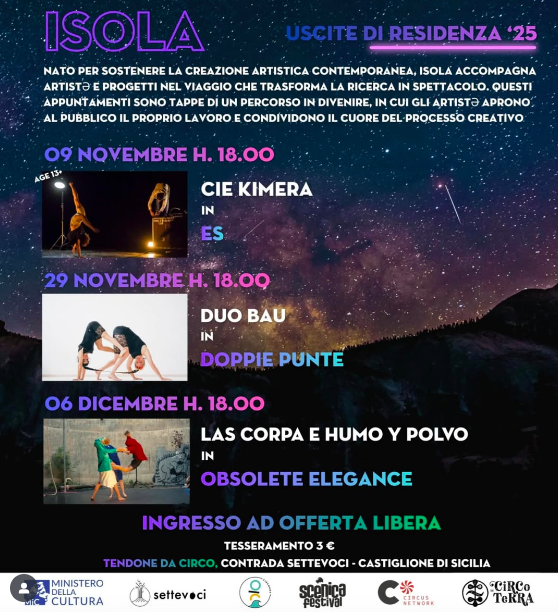 Siamo lieti di presentarvi Isola, progetto nato per sostenere la creazione artistica contemporanea e accompagnare artist* e progetti nel viaggio che trasforma la ricerca in spettacolo.